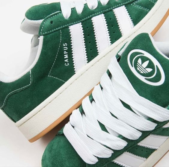 E o tênis do momento! Na colorway “Core green “, o Campus é produzido em camurça premium verde que se combina as três listras clássicas da Adidas em couro branco. Detalhes em branco também aparecem no cadarço, logo Adidas no calcanhar e logo Adidas na língua. O tênis tem uma entressola vintage, em off-white, dando um ar muito clean. A sola é produzida na cor natural de borracha, chamada gum sole. O Campus verde  é o tênis perfeito para seu dia a dia.